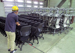 | ■買い取ったオフィス家具の保管風景 | ||